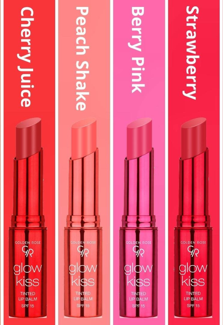 تینت بالم لب گلدن رز دارای SPF 15 است که از لبها در برابر اشعهی UV نور خورشید محافظت میکند. تینت Glow Kiss گلدن رز به راحتی روی لب لغزیده و دارای رنگدانههای بسیار قوی هستند که همانند رژلب عمل کرده و رنگ آنها به صورت طولانی مدت روی لبها باقی میماند. هر رنگ این تینت بالم لب دارای رایحه مخصوص خودش است و بعد از استفاده از رایحه بینظیر آن لذت خواهید برد. بعد از استفاده باعث چسبندگی نشده و به هیچ وجه پخش نمیشود. ماندگاری بالم لب رنگی گلدن رز بسیار عالی بوده و ساعتها روی لب باقی میماند. رنگ کاملا طبیعی این بالم لب، جذابیت و درخشش لبها را چندین برابر میکند.