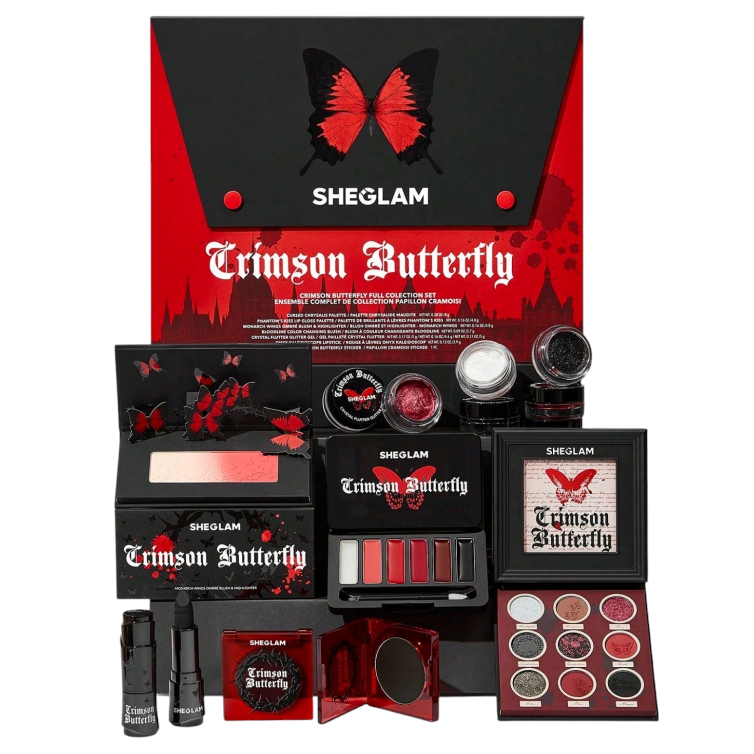 ست آرایشی پروانه‌ای شیگلم | Sheglam Crimson Butterfly Full Collection | مجموعه کامل آرایش با طراحی گوتیک و المان‌های هالووینی