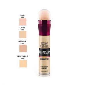 کانسیلر میبلین شماره 01 معرکه حاوی عصاره گوچی بری بوده که به طور فوقالعادهای در کلاژنسازی پوست و با جلوگیری از پیری زودرس، به جوان شدن آن کمک میکند. همچنین خواص آنتی اکسیدانی داشته و با مبارزه با رادیکالهای آزاد، باعث درمان التهاب و قرمزیهای ناشی از خستگی نیز میشود. کانسیلر میبلین شماره 00 از طرفی با قدرت SPF 18 به کاهش تاثیرات اشعههای مضر نور خورشید کمک کرده و مانع از آسیب به پوستتان میشود. همچنین رطوبت پوست را تامین کرده و با ماندگاری فوقالعاده، تا مدتها به همان شکل اولیه باقی میماند. این محصول با داشتن پد سرخود و آنتی باکتریال، برای پوششدهی تیرگیها، چین و چروک و لکهای پوستی بانوان استفاده شده برای انواع پوست مختلط، خشک، معمولی و چرب مناسب است. قیمت کانسیلر انیستنت ایج اریزر میبلین اورجینال نسبت به کیفیت و ماندگاری بالای آن بسیار مناسب است.