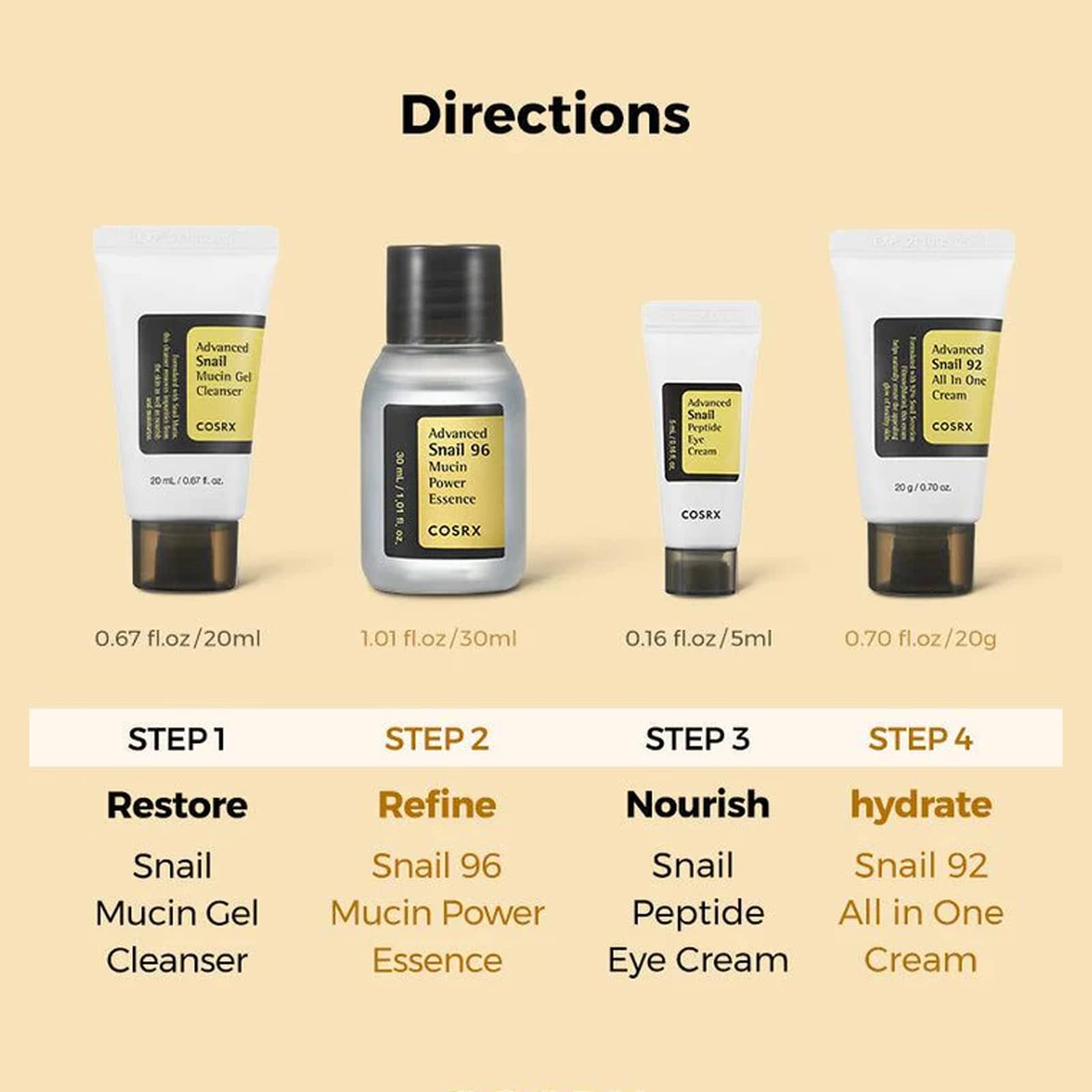 کیت لاین حلزون برند کوزآرکس شامل چهار محصول است یک لاین کال مراقب پوستی است که برای داشتن پوستی شفافتر و سالمتر به آن نیاز دارید. این کیت شامل یک شوینده صورت، اسانس حلزون، کرم دور چشم و یک مرطوب کننده است که در ادامه خاصیتهای هر کدام را بررسی میکنیم.